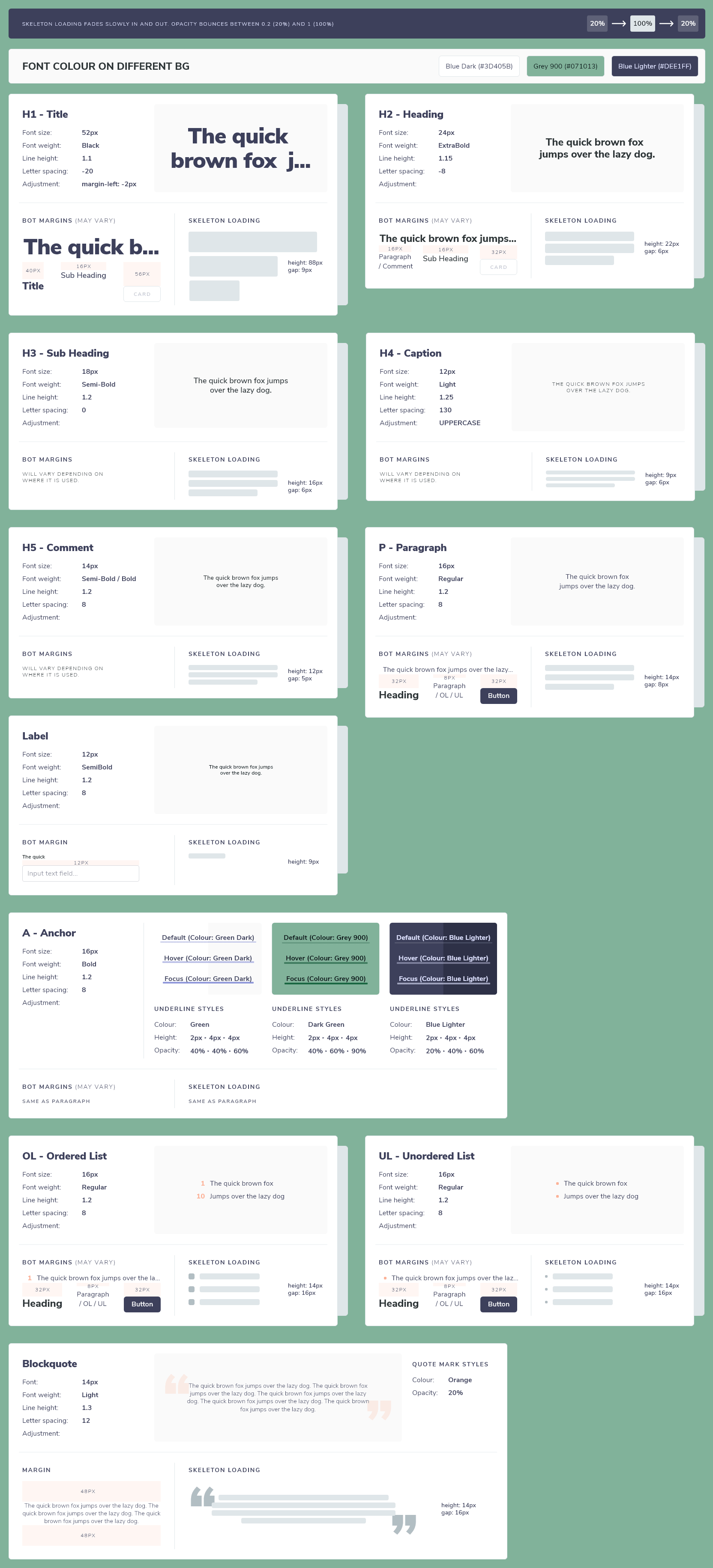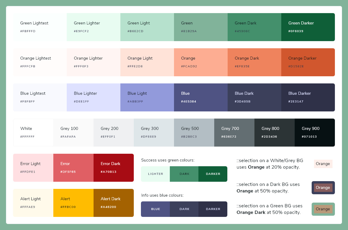 Using a green as a background colour presented some challenges in accessibility, so I made sure the text that showed on the green background would meet the AAA accessibility requirements.