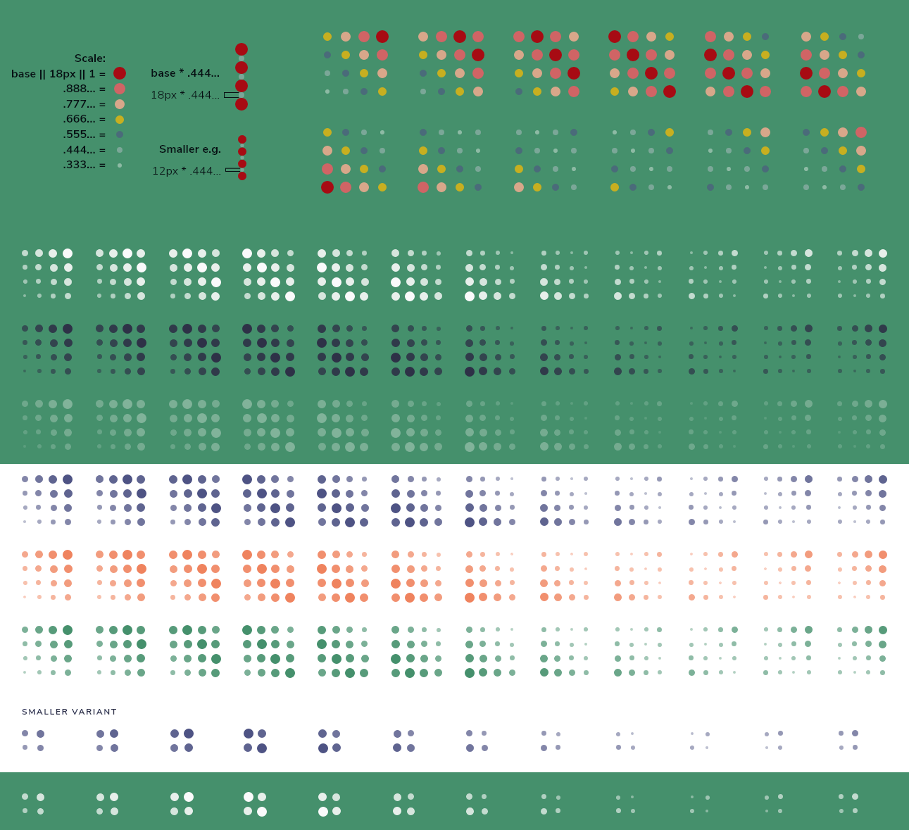 The circles in the background use the golden ratio to set their sizes. The largest circle has a fixed height and width, and the subsequent circles follow the formula for resizing.