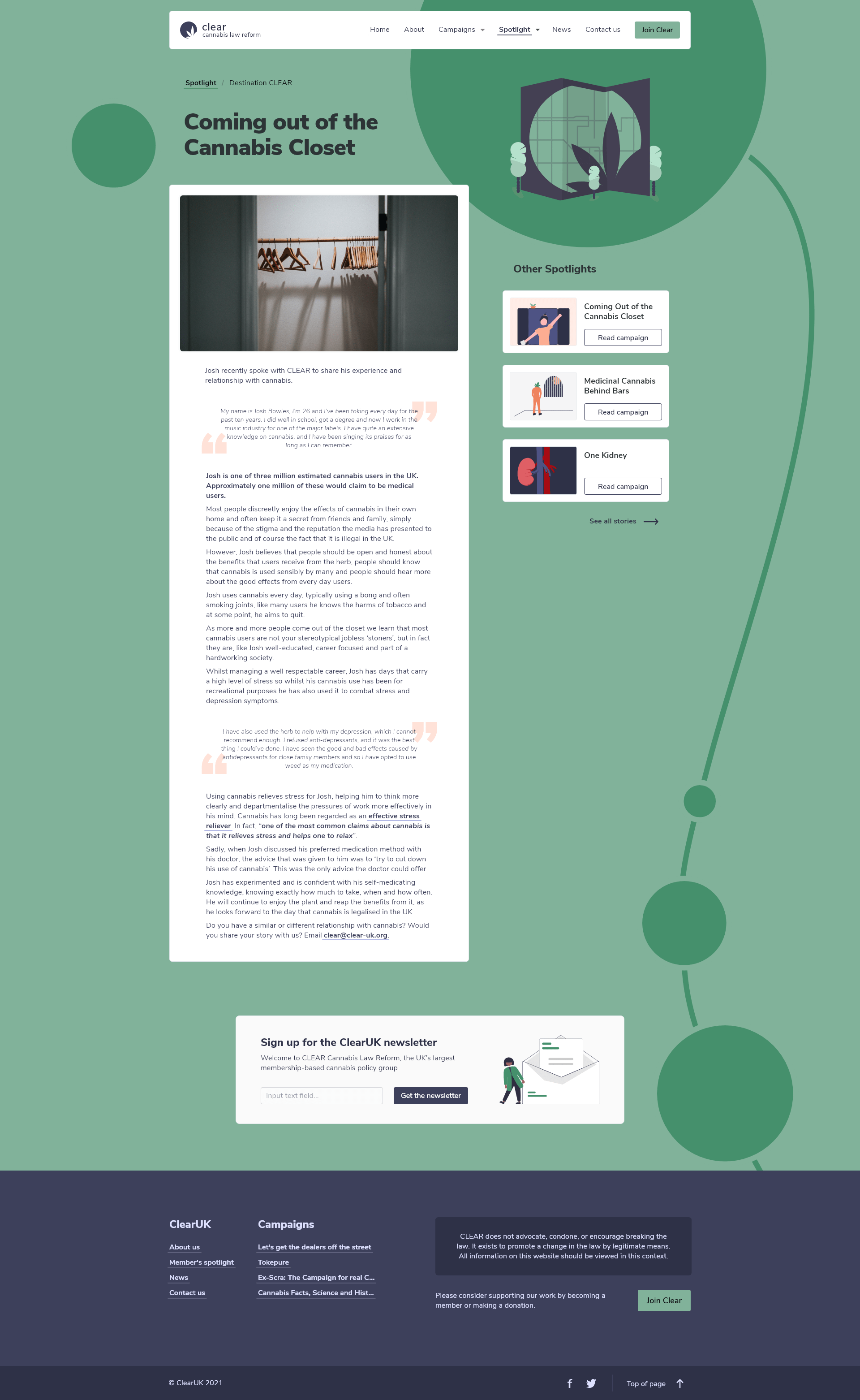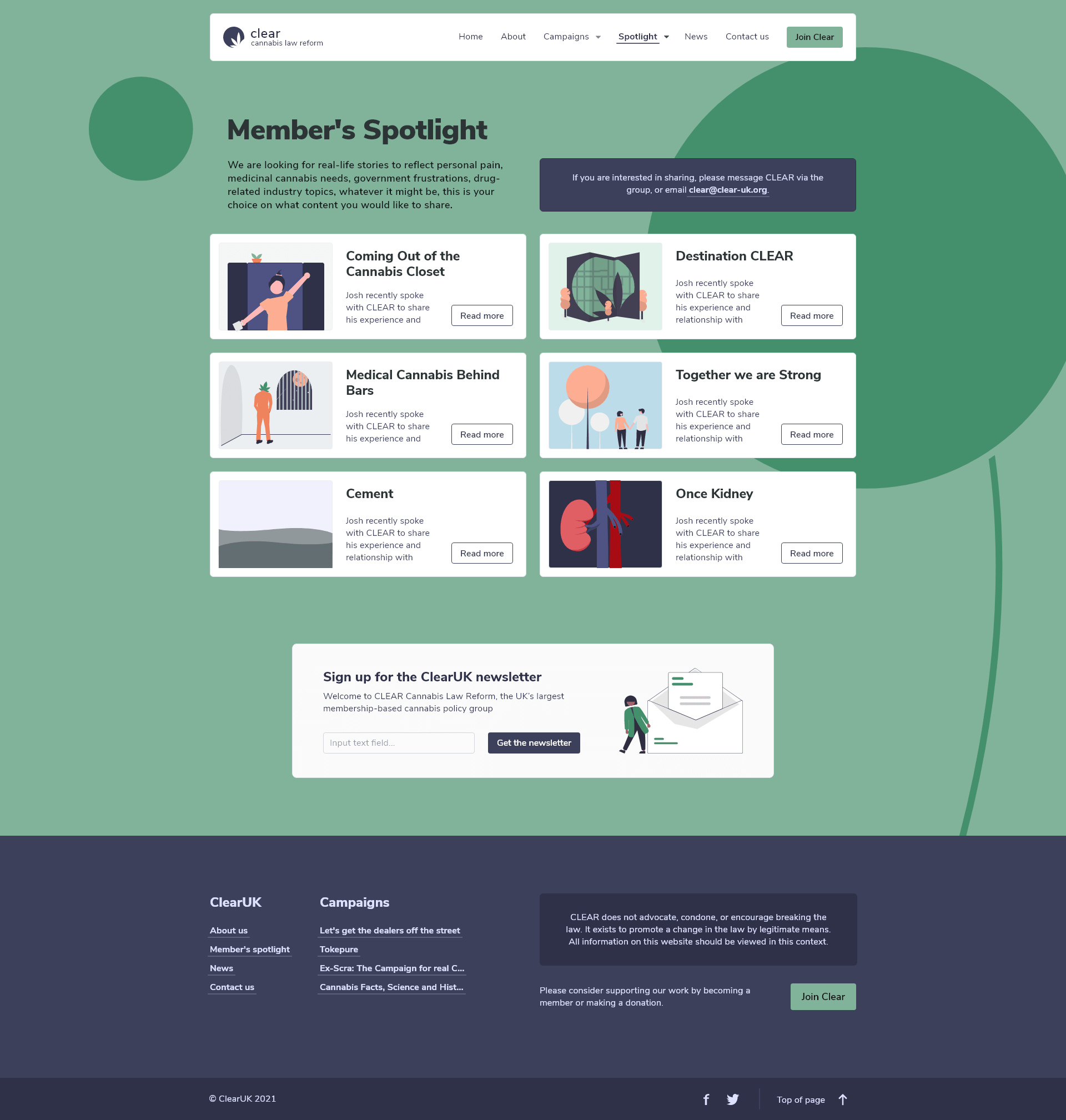 Clear UK is an organisation dedicated to reforming the laws around cannabis and proving the medicine can be a tool to help people. I handled the UX / UI and my friend would handle the development.