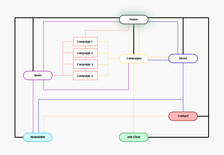 Once I had the journey laid out I went ahead to create a flow map of the new website. I analysed the current layout and tightened it up, so the content was easier to navigate to.