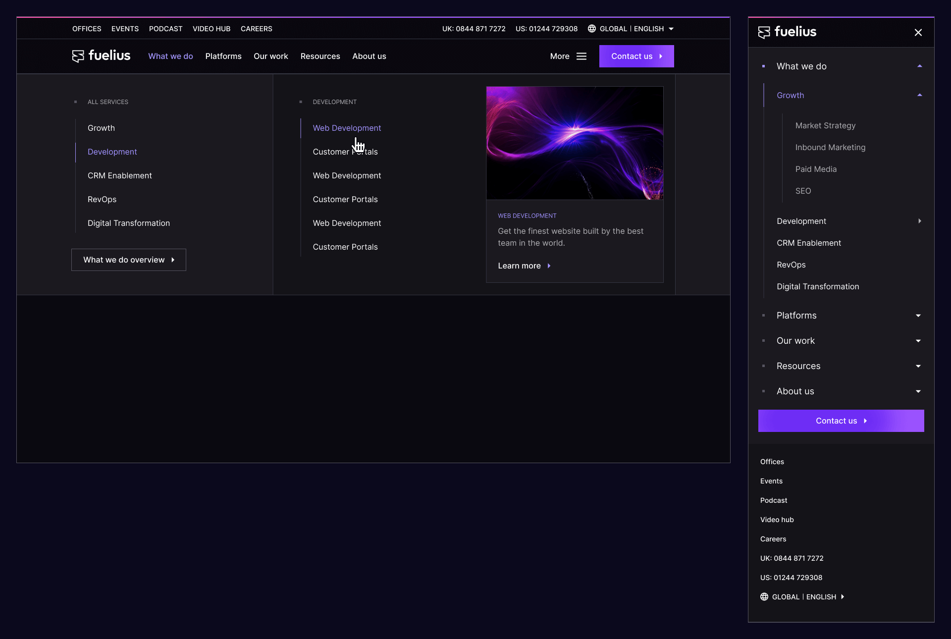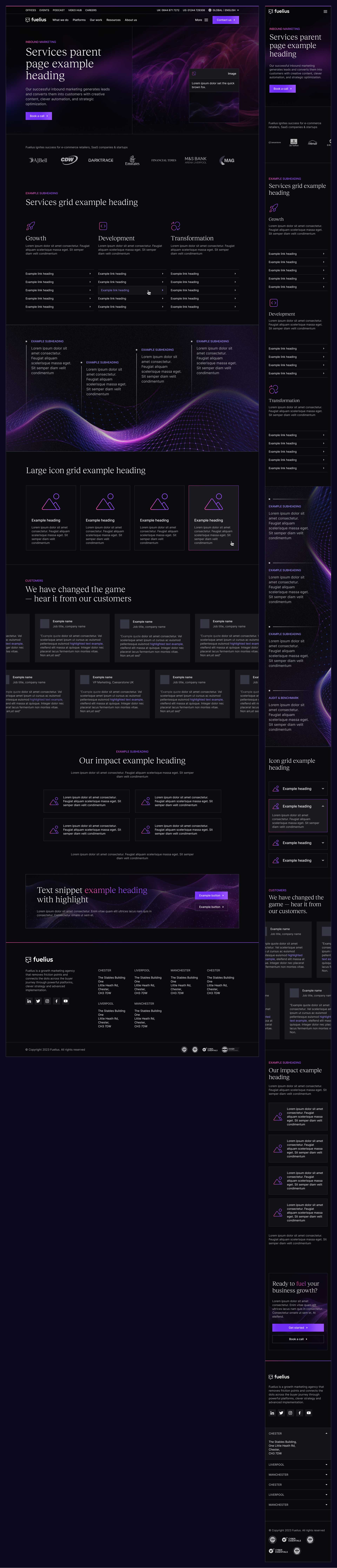Fuelius is a digital agency focused on elevating HubSpot and Umbraco websites for clients. I joined as a UX designer, helping rebrand the company, as well as shift the workflow to a more modern Figma design methodology – building templates and connecting design & dev workflows together.
