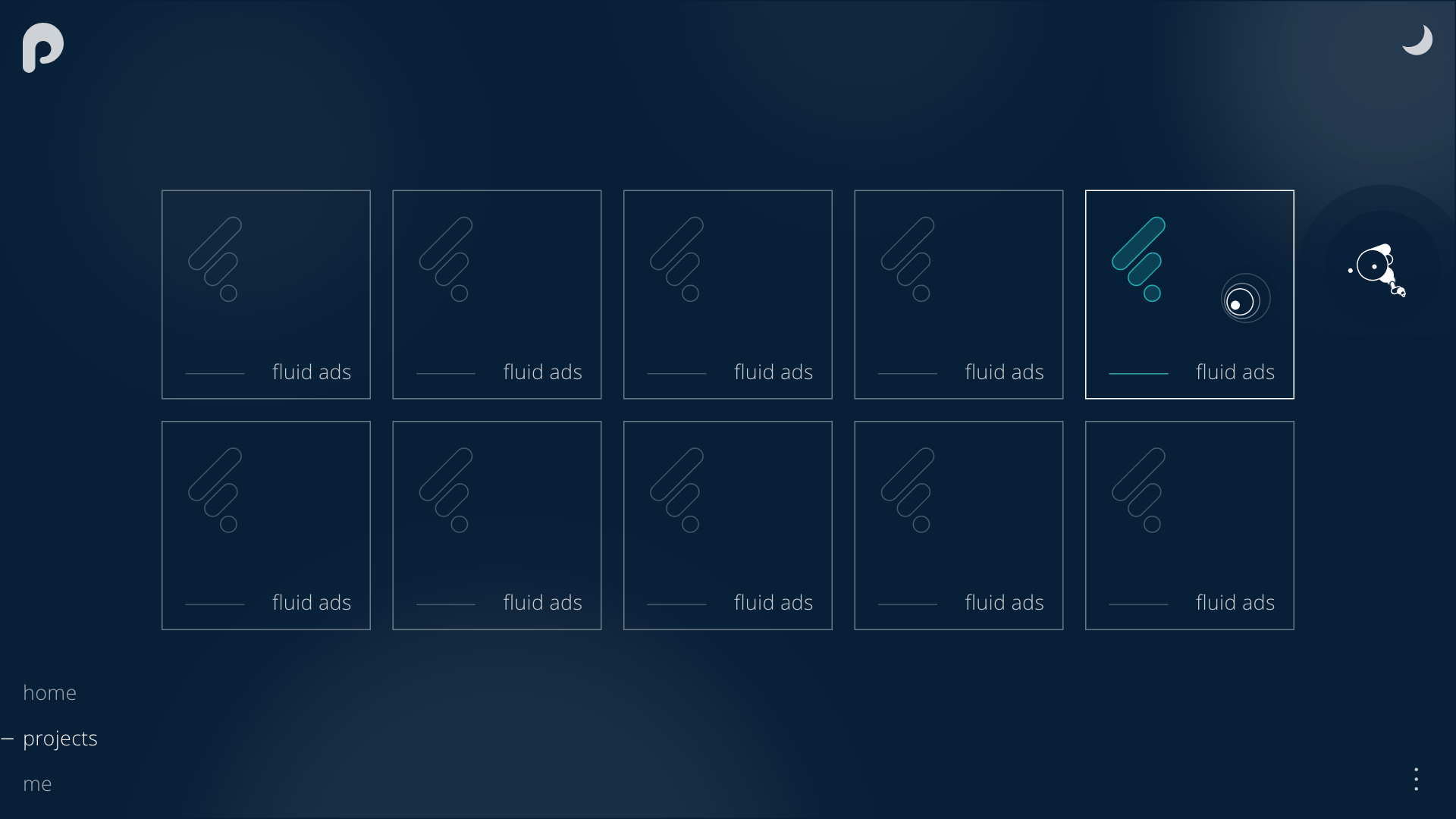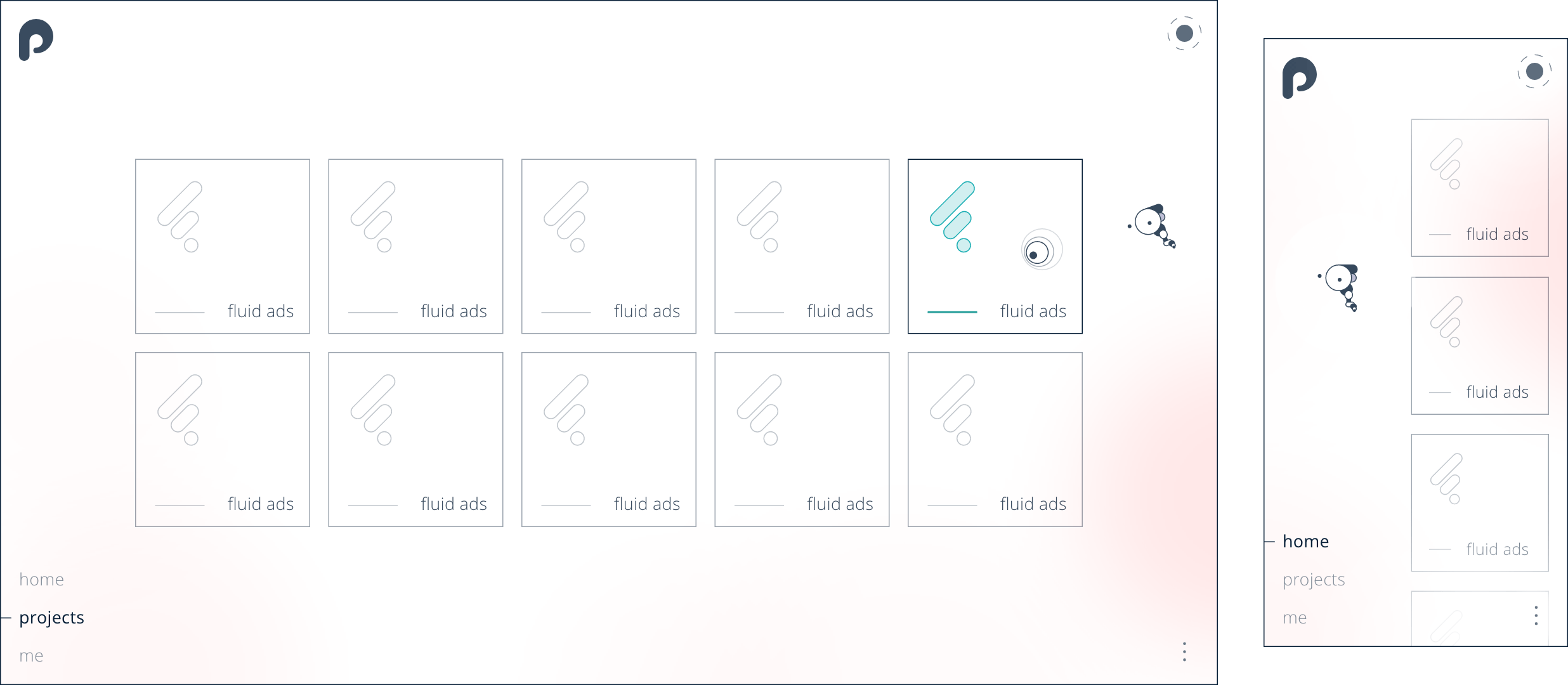 The grid menu button on the bottom left corner is also dynamic. The amount of grid items that is shown is dependant on the amount of projects available - and the current project number will reflect the active state of the grid.