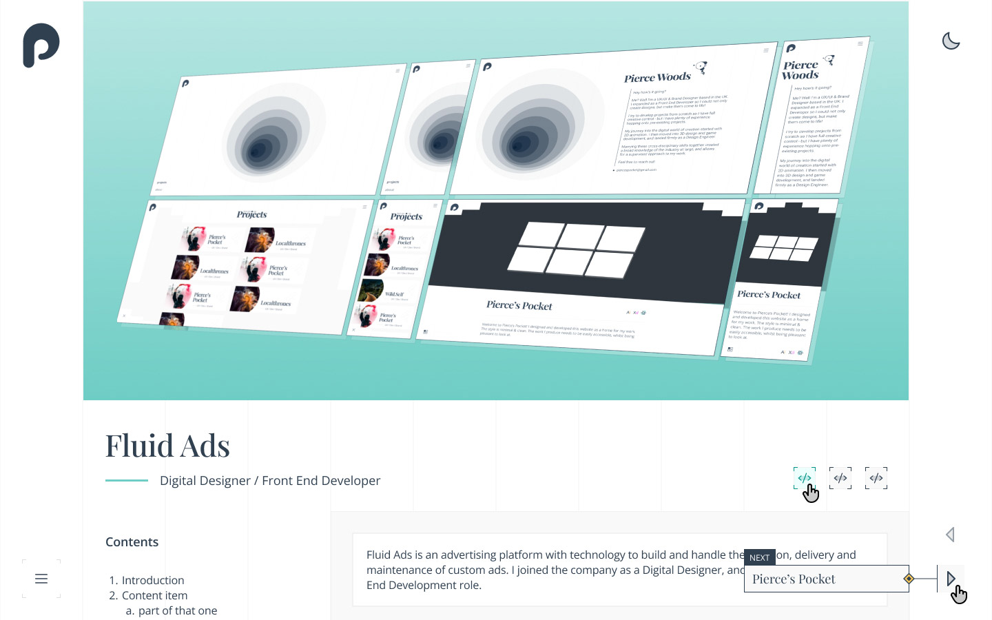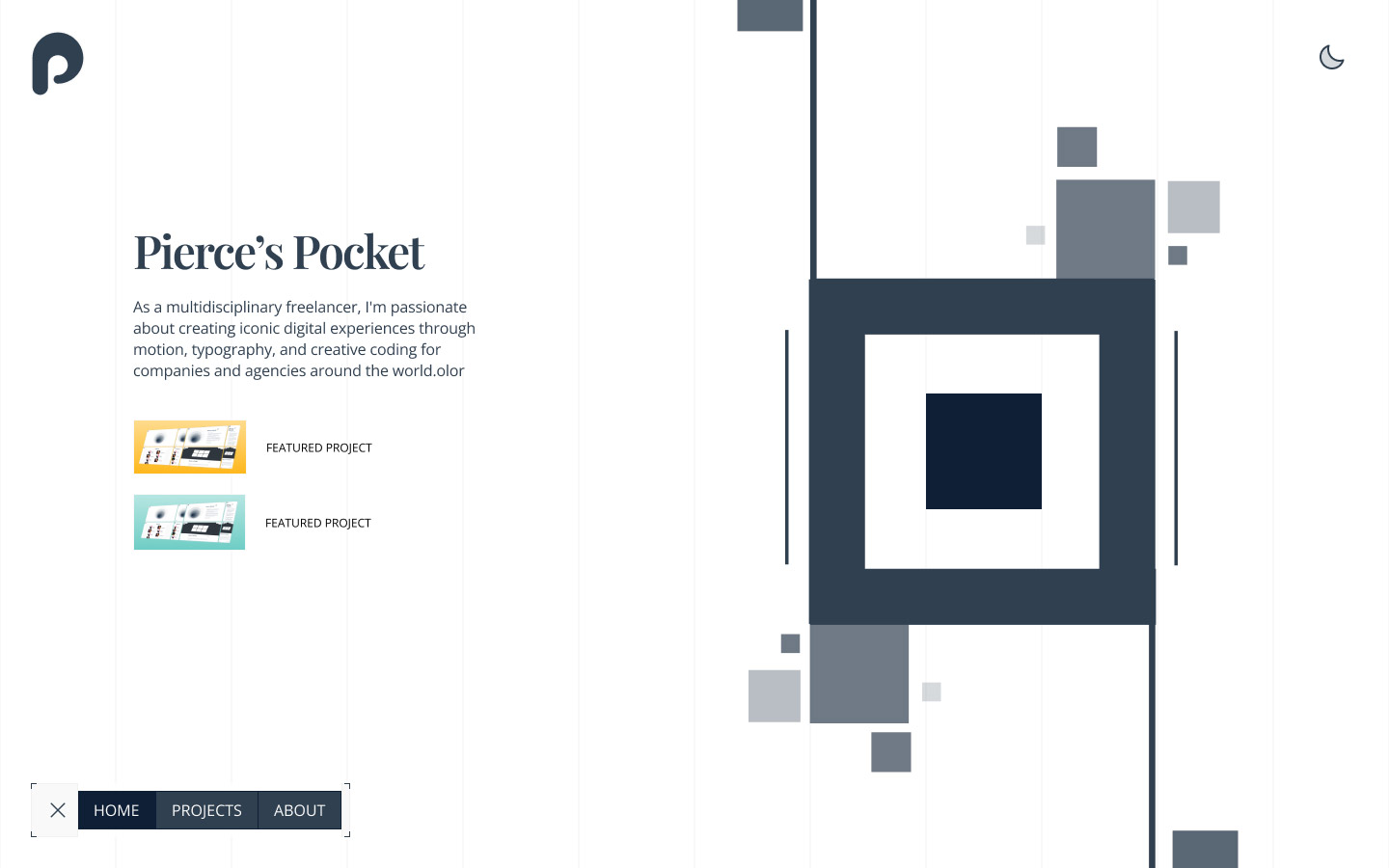 Welcome to Pierce’s Pocket! I designed and developed this website as a home for my work. The style is minimal & clean. The work I produce needs to be easily accessible, whilst being pleasant to look at.