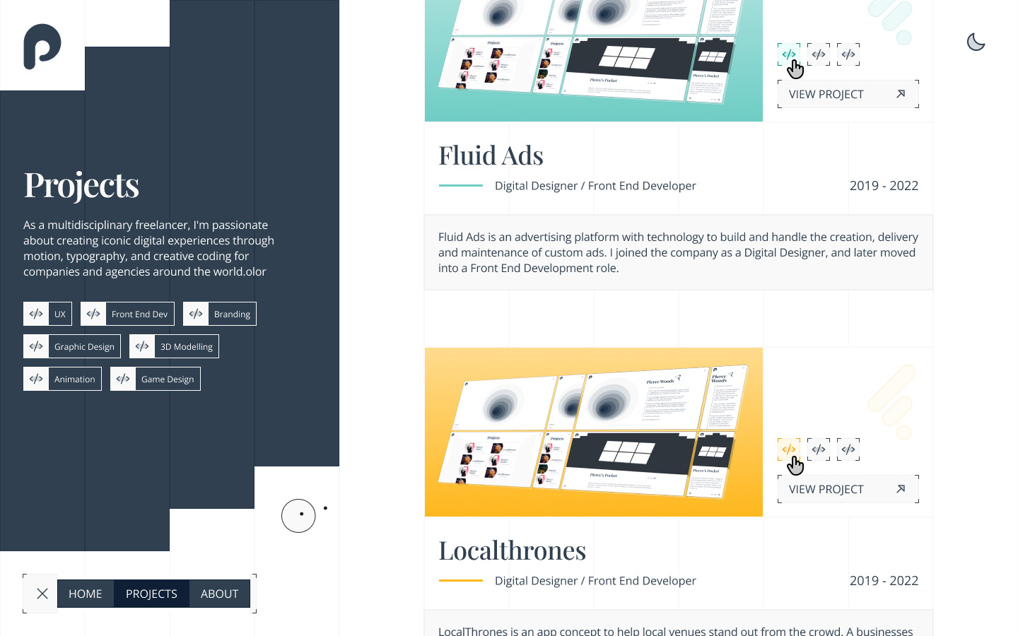 Once I add a custom cursor to the site, the idea was to add fun little characters that can either follow the cursor around - or just be interactable. Scattering these illustrations around the site would add some unique personality, and could even be themed with the project being viewed.
