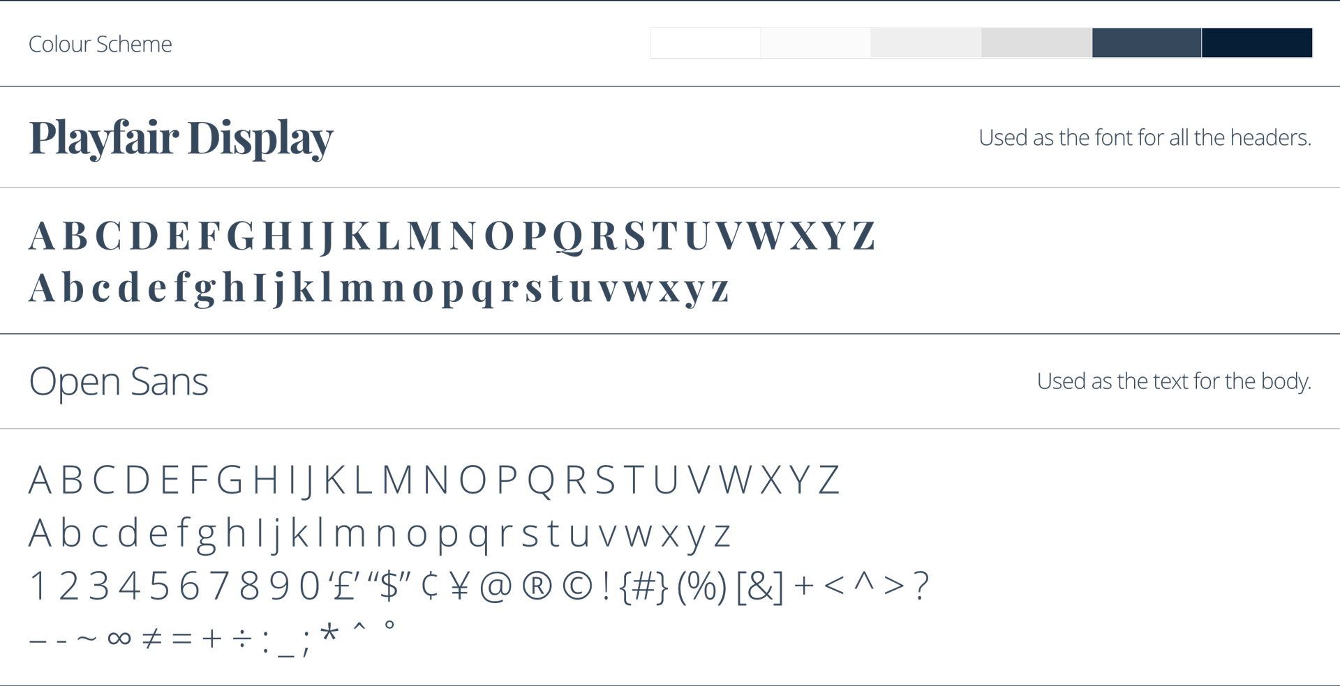 Playfair Display was used in earlier iterations, but I have recently opted for a more modern look to blend in with my new brand direction.